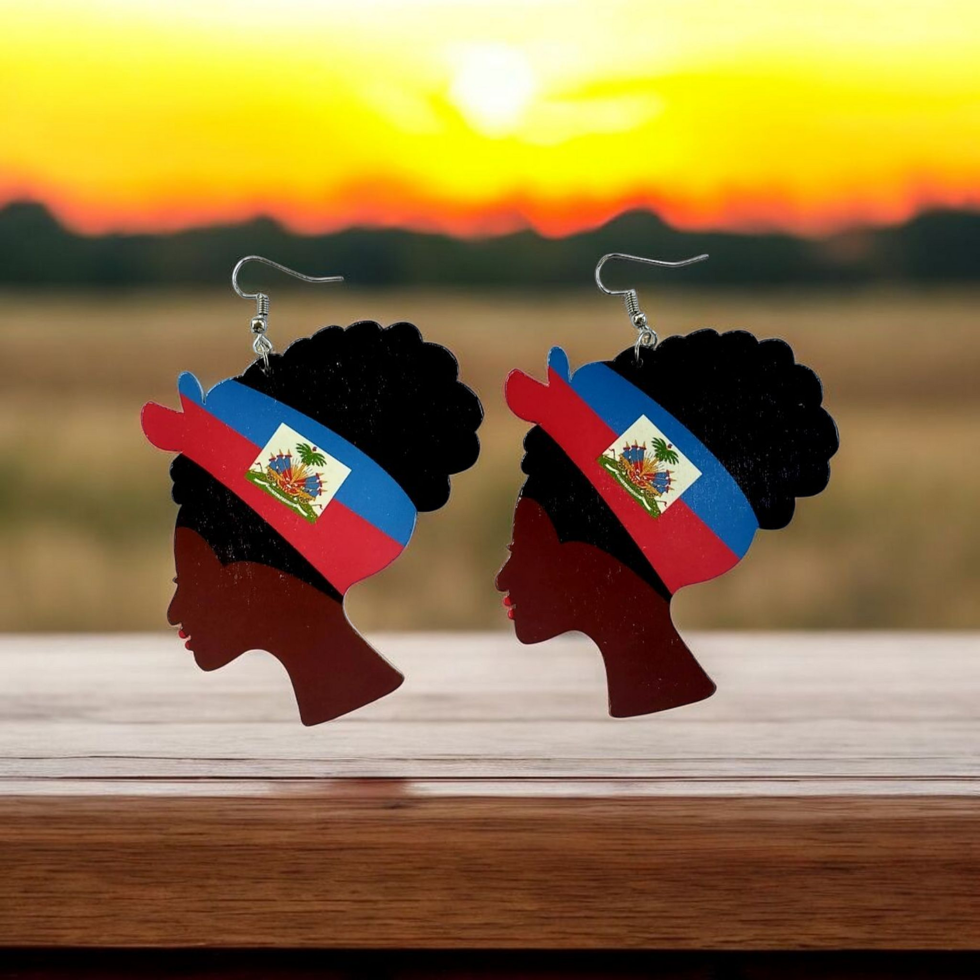 Haitian Flag Design: Show your national pride with these earrings that feature the flag of Haiti.